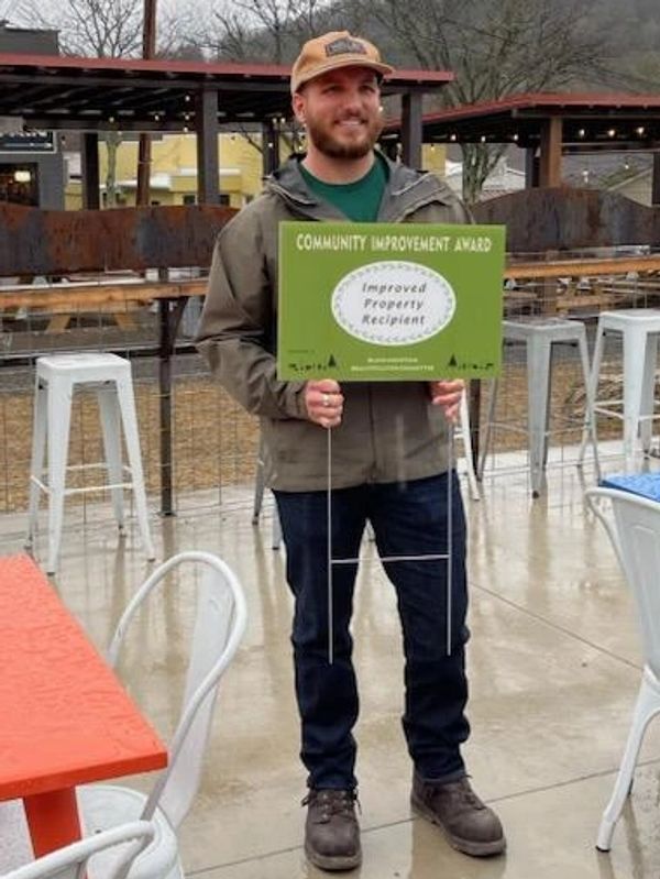 The Pure & Proper received the award for the work they have done to remake their property in this historic part of our town. In addition to the restoration of the old service station, they removed asphalt that was in front and added a green space with beautiful landscaping.