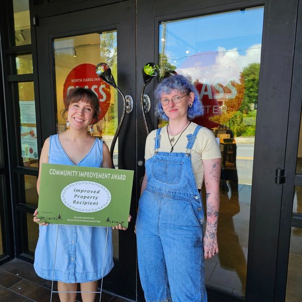 The newly opened and long awaited NC Glass Center #ncglasscenter won for the beautiful transformation of an unused building into a working studio and art space downtown. Now Black Mountain boasts vibrant arts organizations flanking East and West State street. Pictured are (left to right) Assistant Director Mamie Fain and Gallery Associate Lily Krueger. 7/25