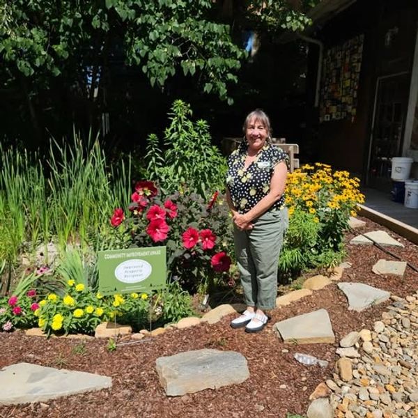 Ellie Stanley who lives at 119 Vance Avenue. Such a wonderful garden to view looking over the fence. Over time many plants were incorporated into this area. Winner 9/23