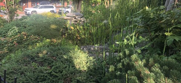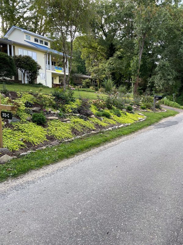 Morning Sky Pottery located at 112 Cherry Street. They planted and maintained a large area that sits above the stonewall on Cherry Street. Winner 9/23